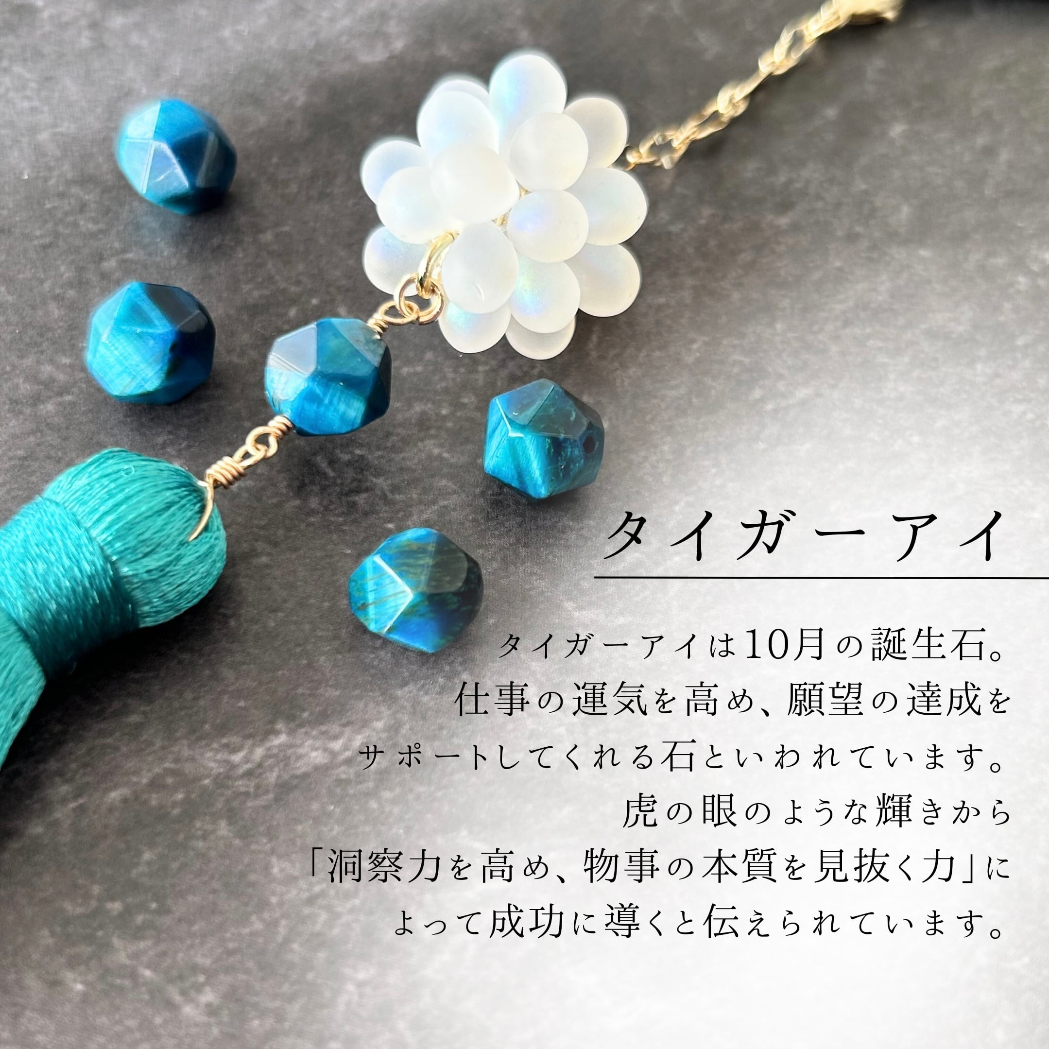 タイガーアイをそっと添え