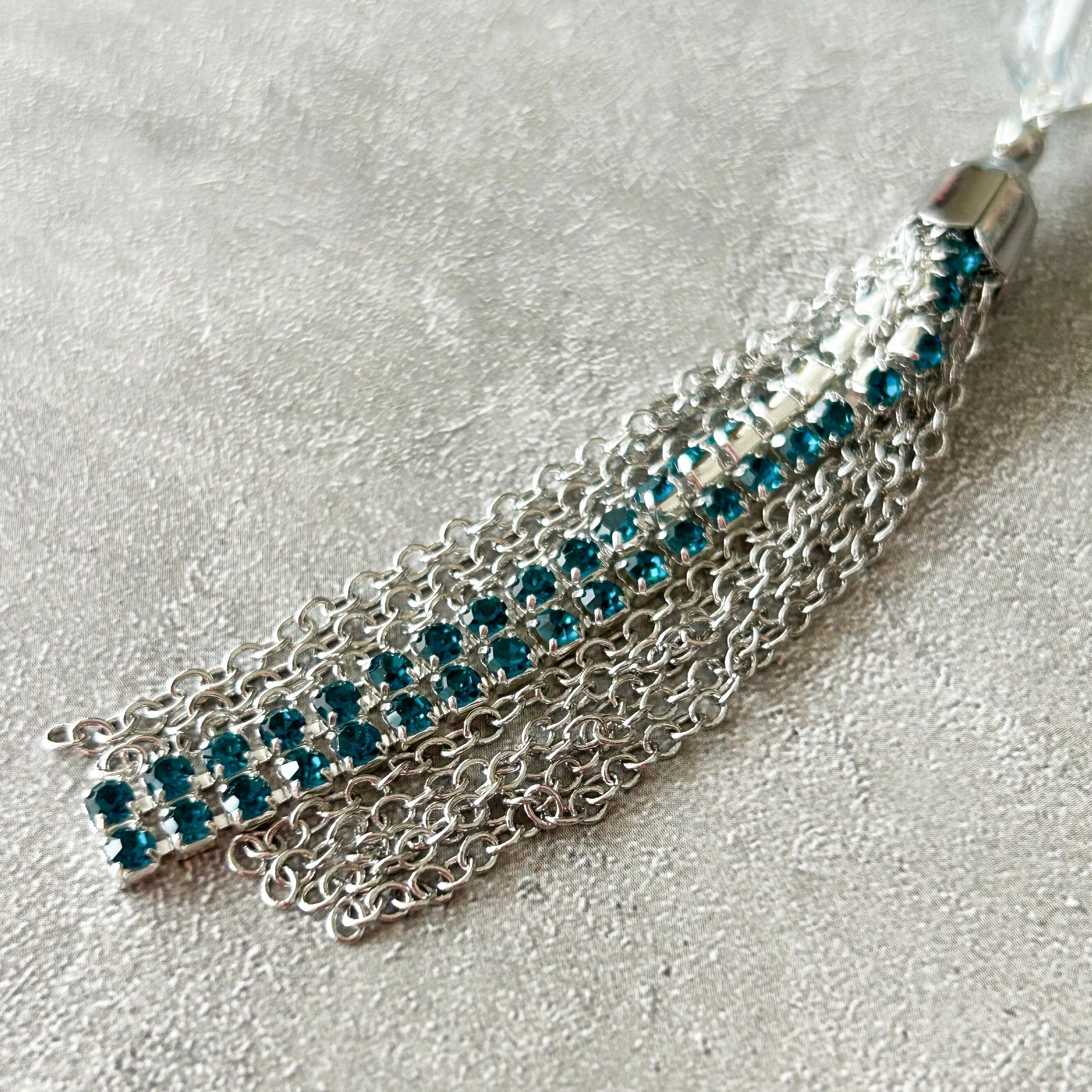 【うるおいブルーの根付け】水晶×チェーンタッセル 和装小物 着物 帯飾り 天然石 ギフト 青 個性的 モード シルバー
