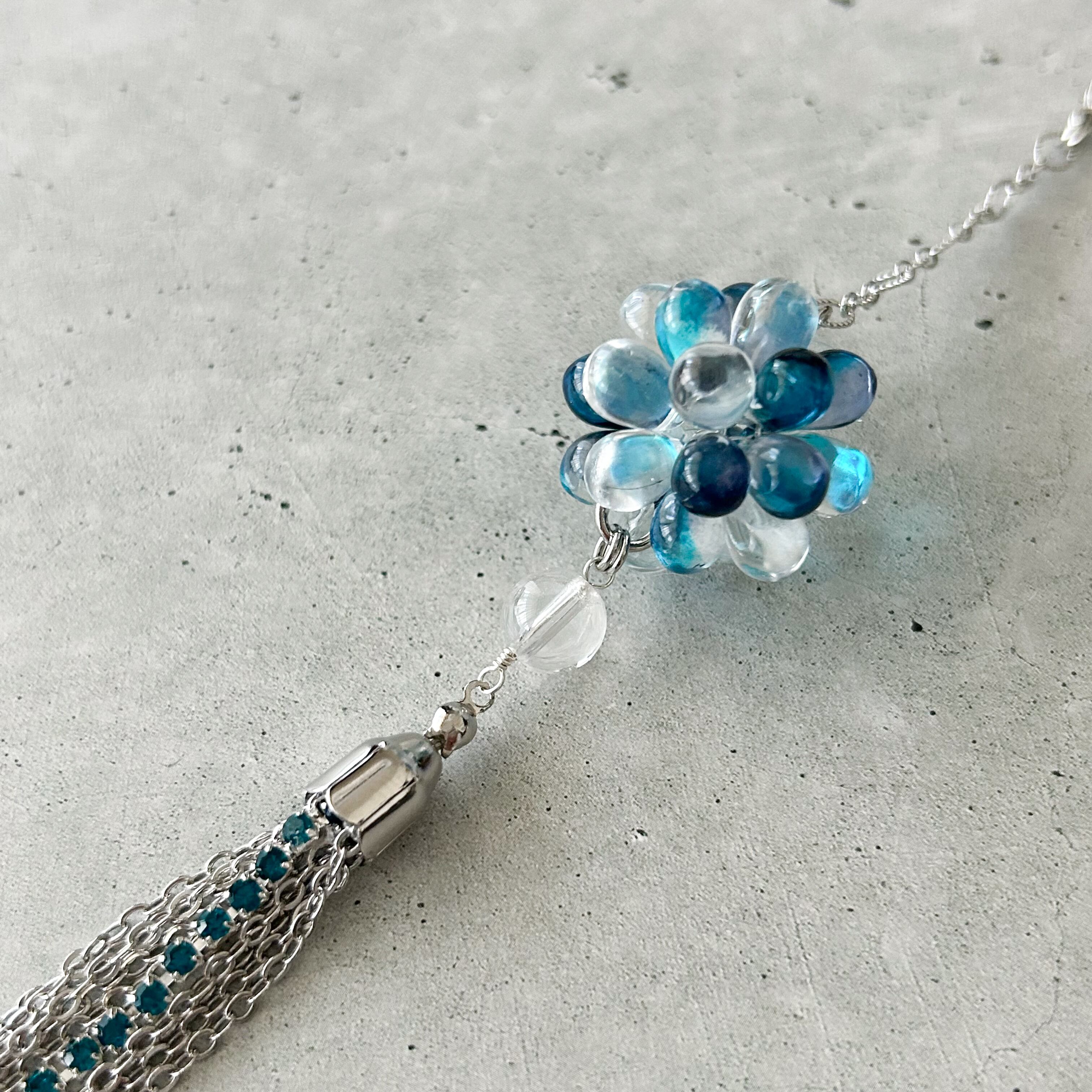 透明×ブルーのチェコガラスで組み合わせた