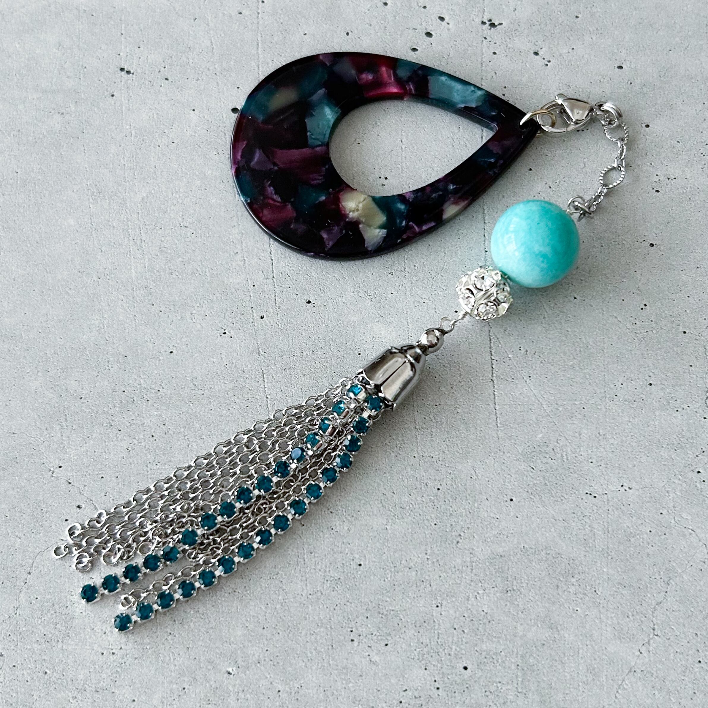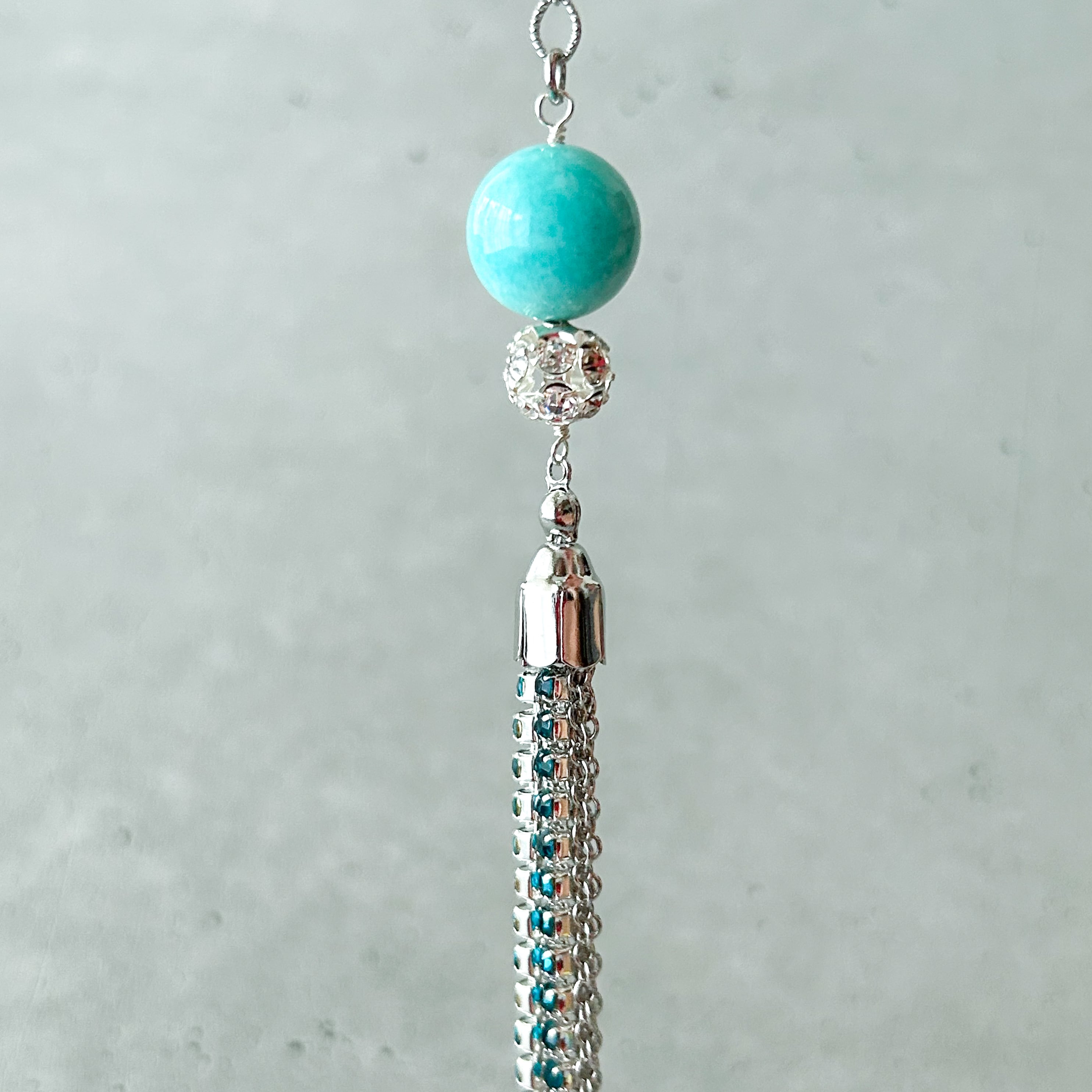 【アマゾナイトの根付け】チェーンタッセル 和装小物 着物 帯飾り 天然石 青 シルバー