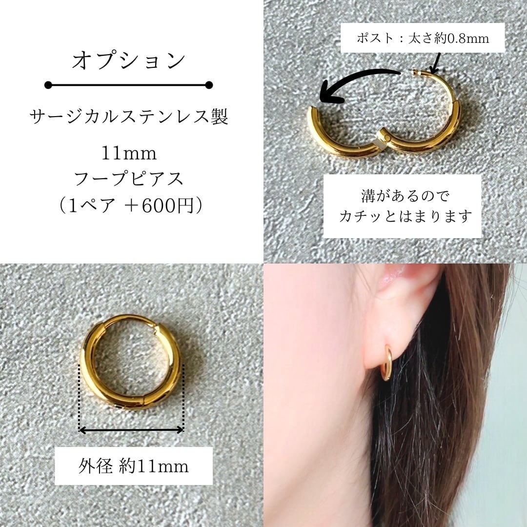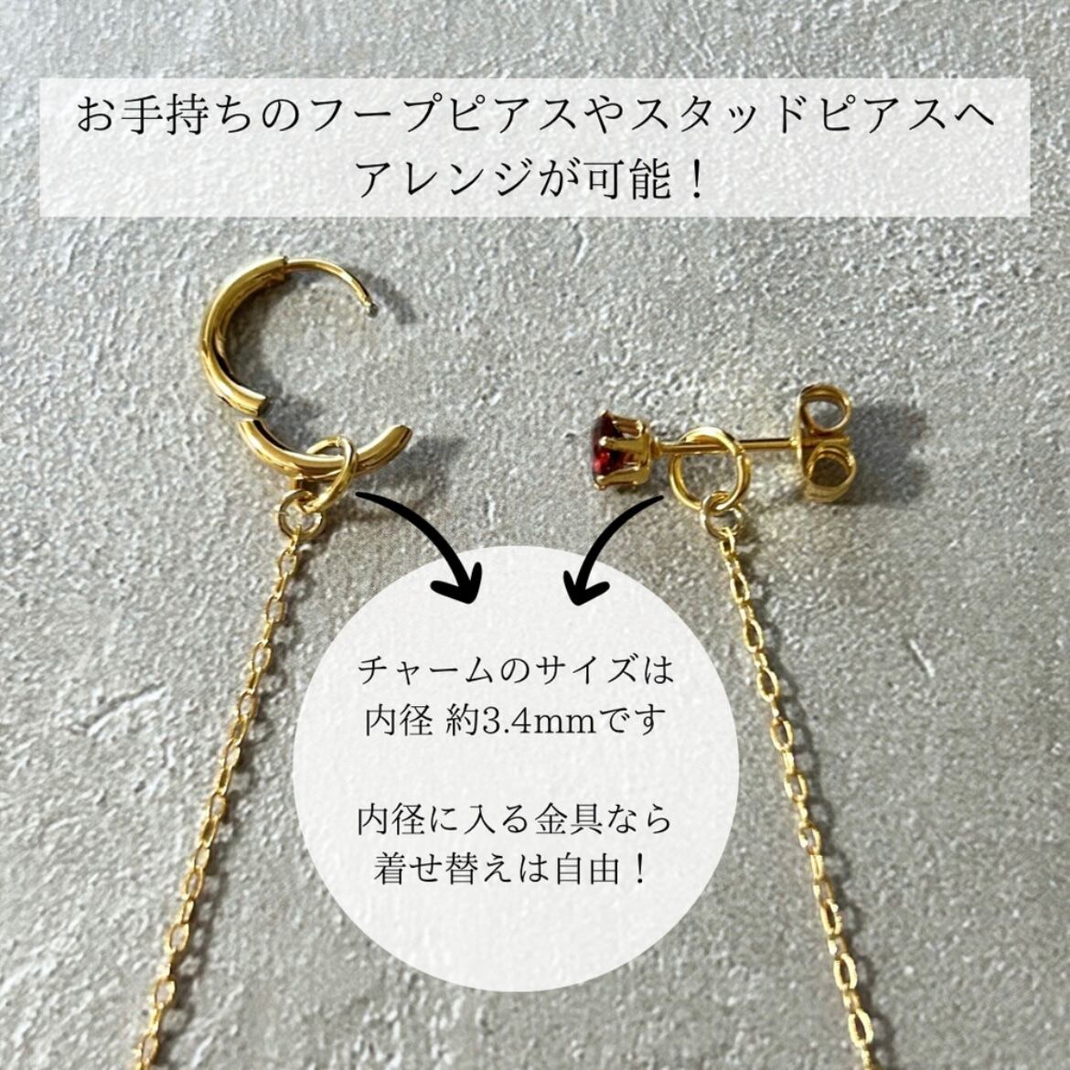 お手持ちのフープピアス・イヤリングにカスタムすることで使い方は何通りにも広がります。
