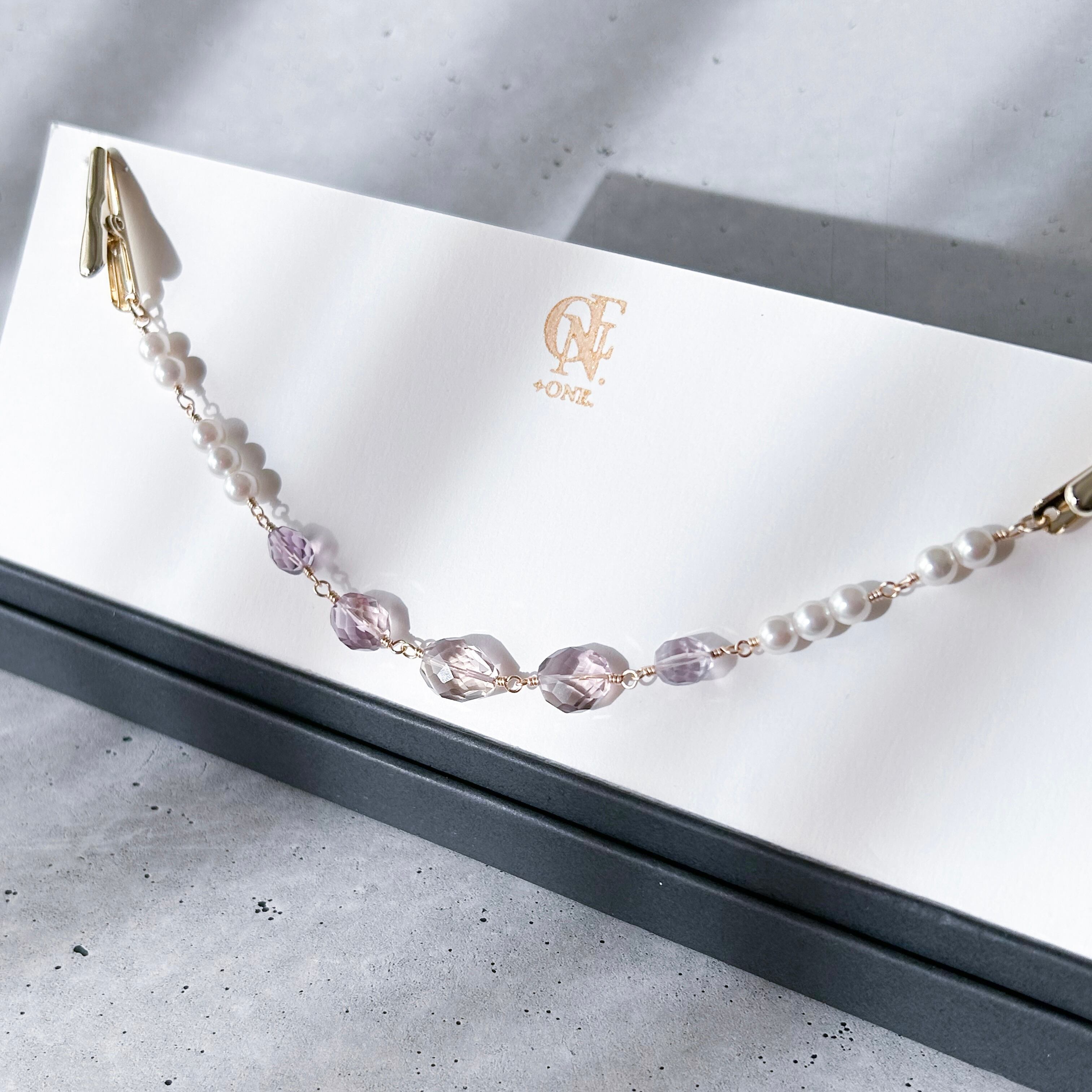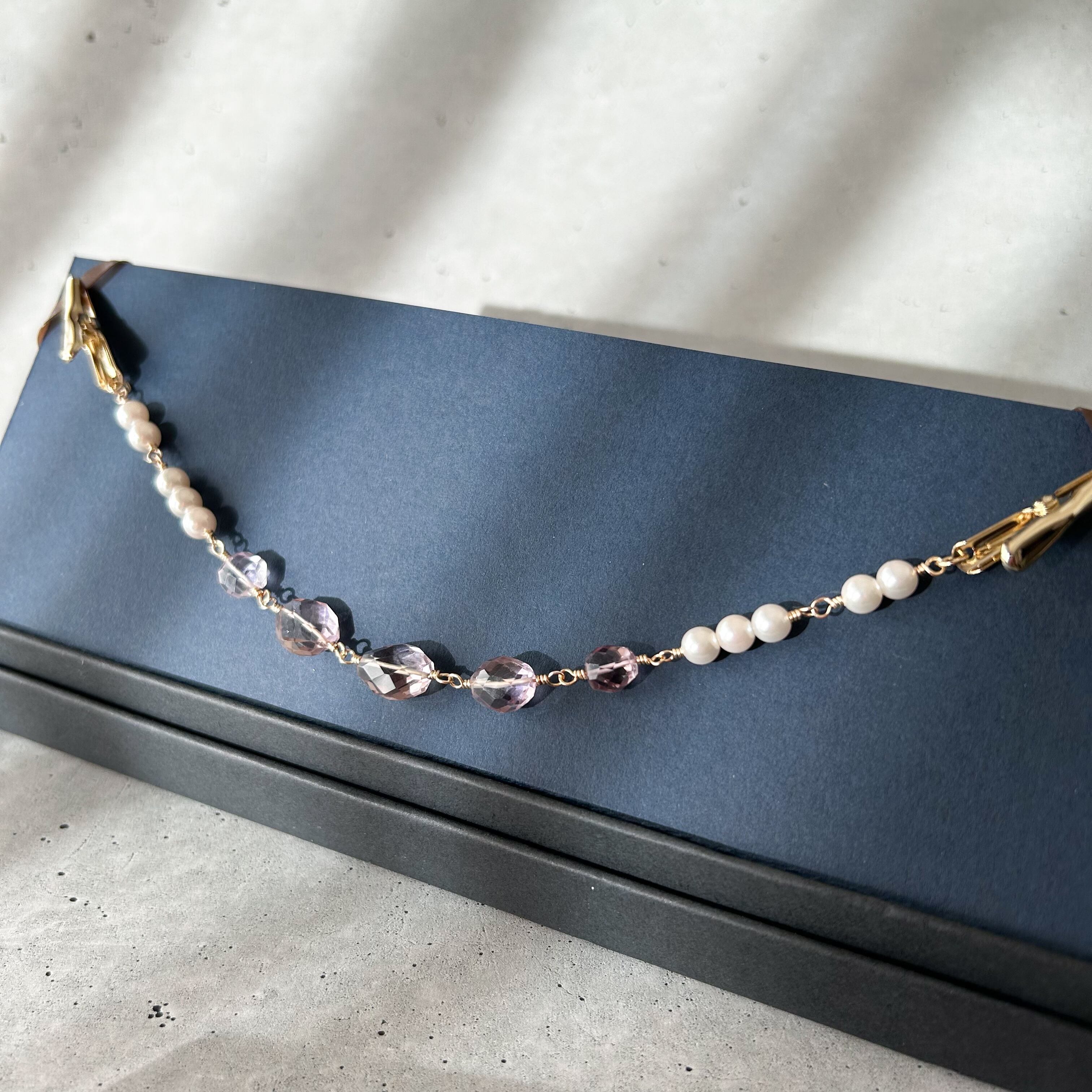天然石アメトリンとホワイトパールを組み合わせた