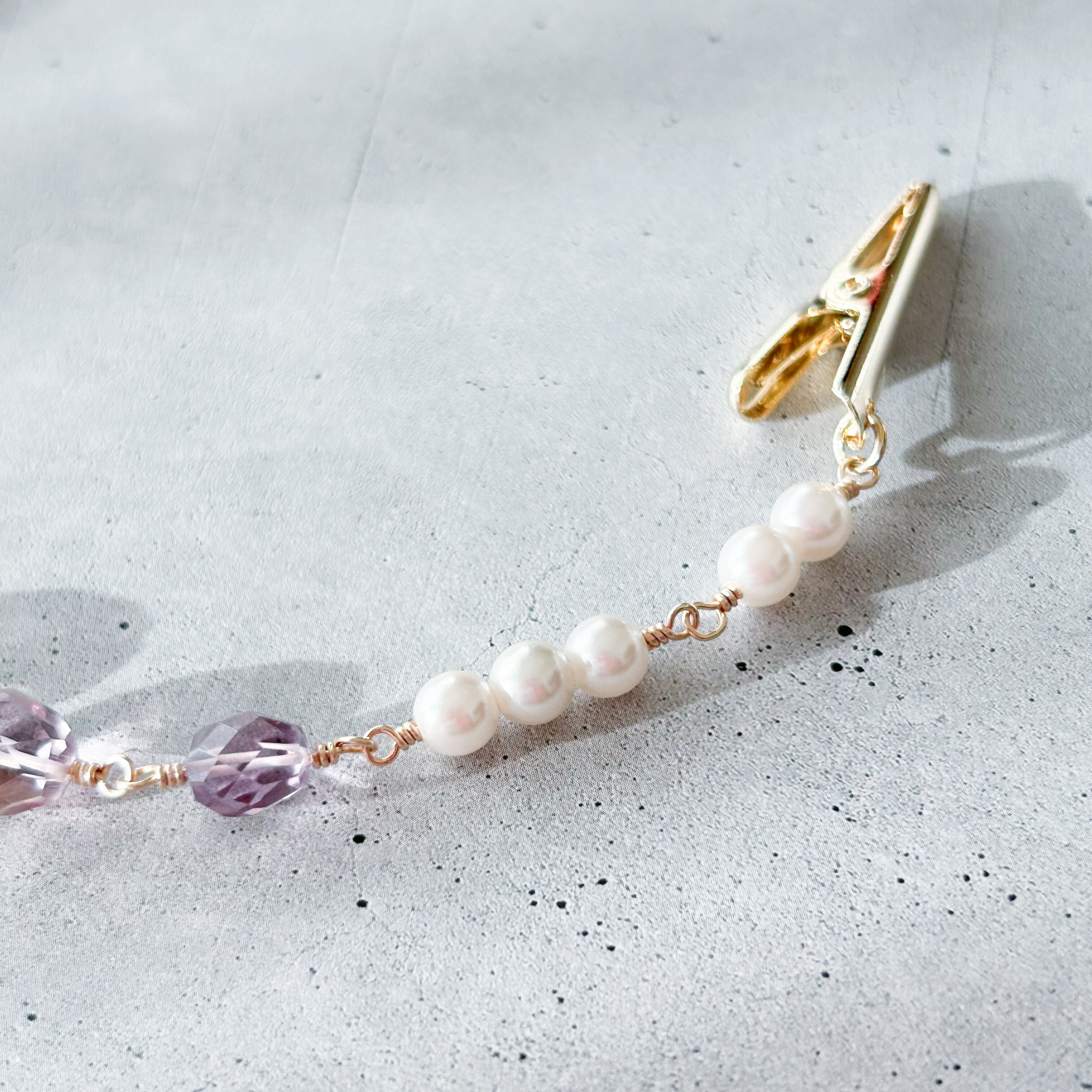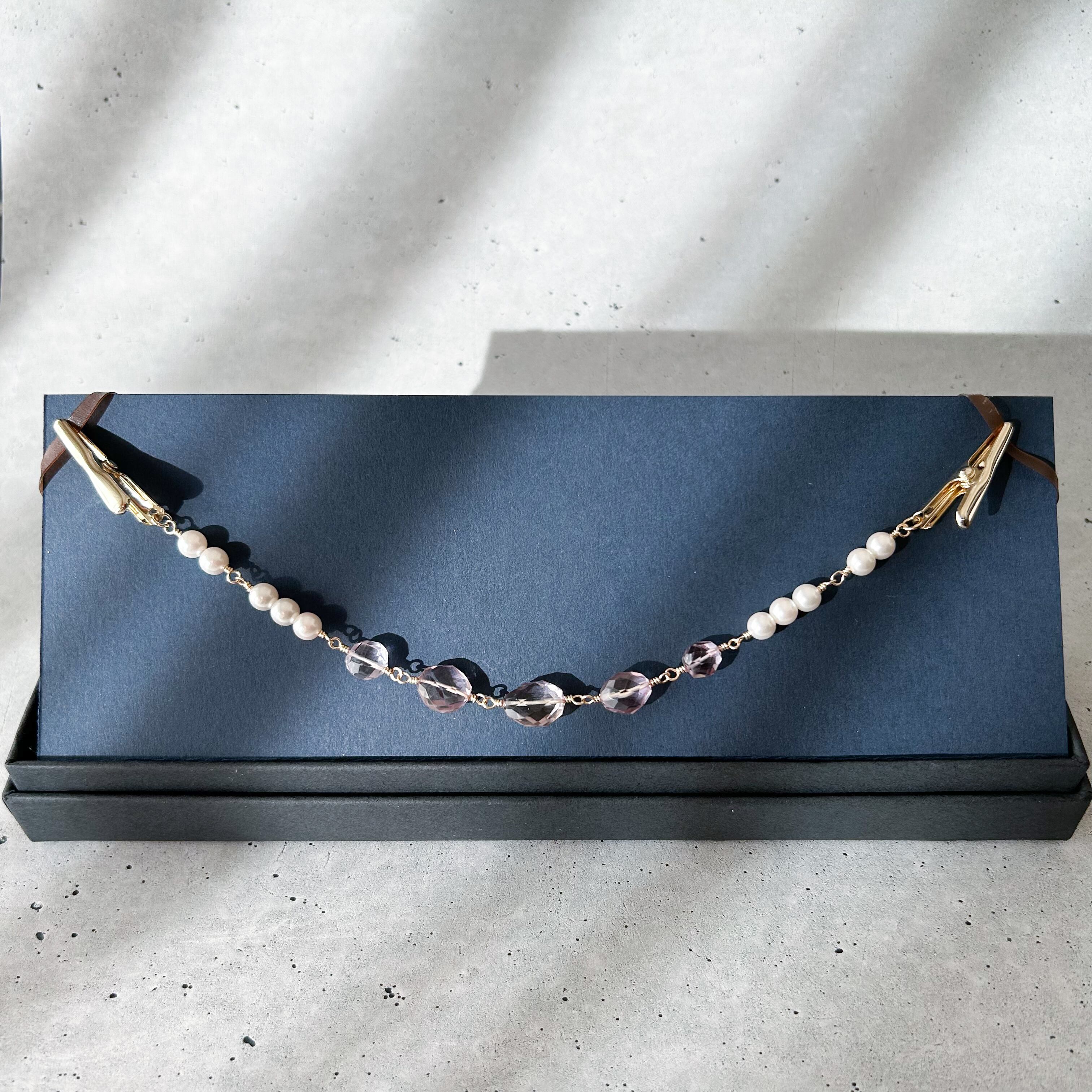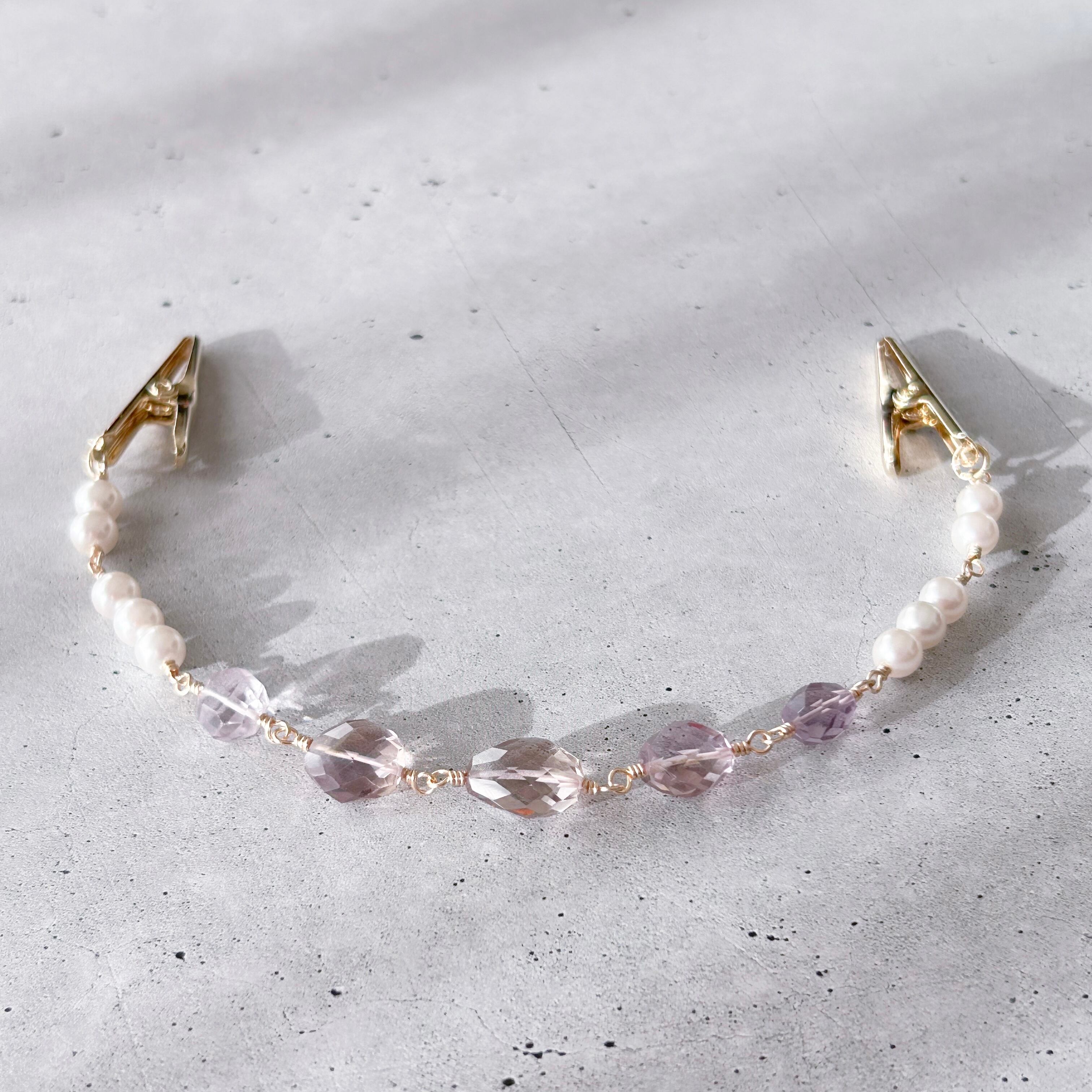 【1点物のロング羽織紐】アメトリン×パール 天然石 羽織留め 着物