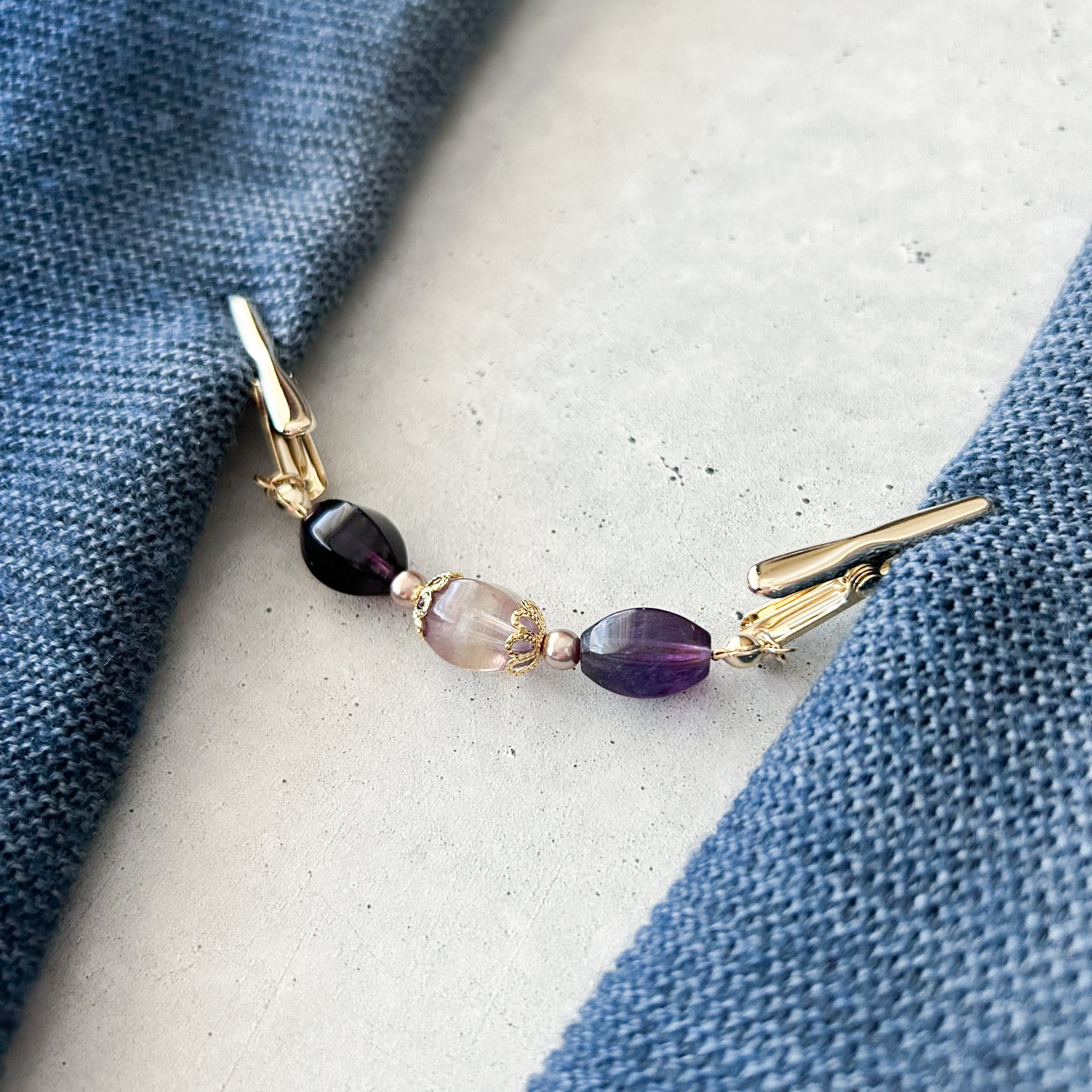 【甘すぎないショールクリップ】フローライト 天然石 ストール留め ストールクリップ カーディガンクリップ