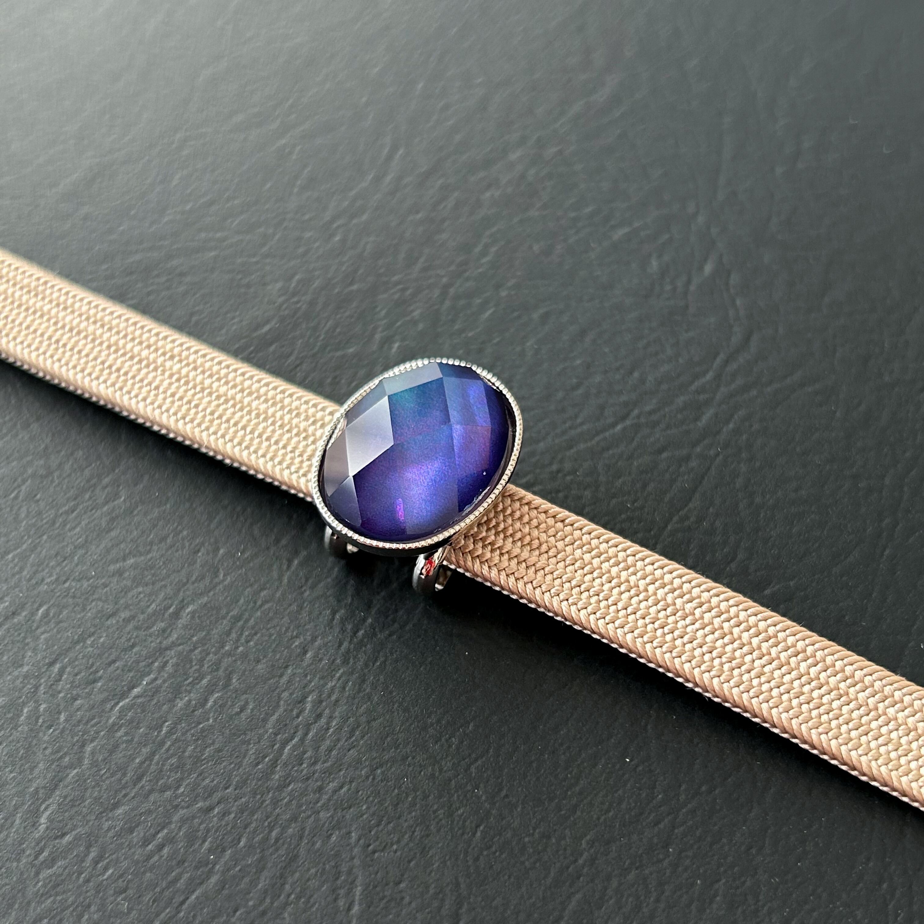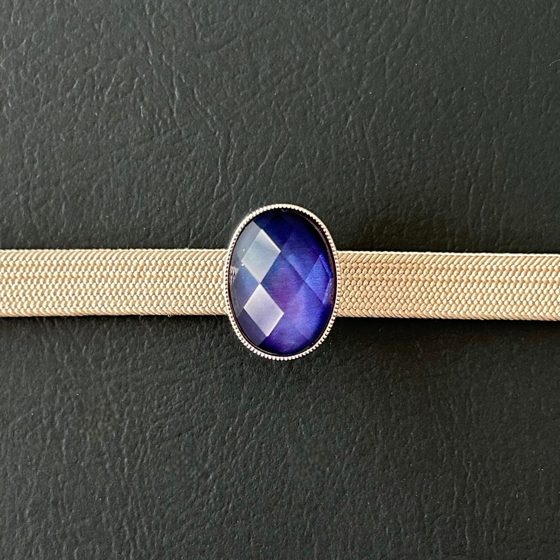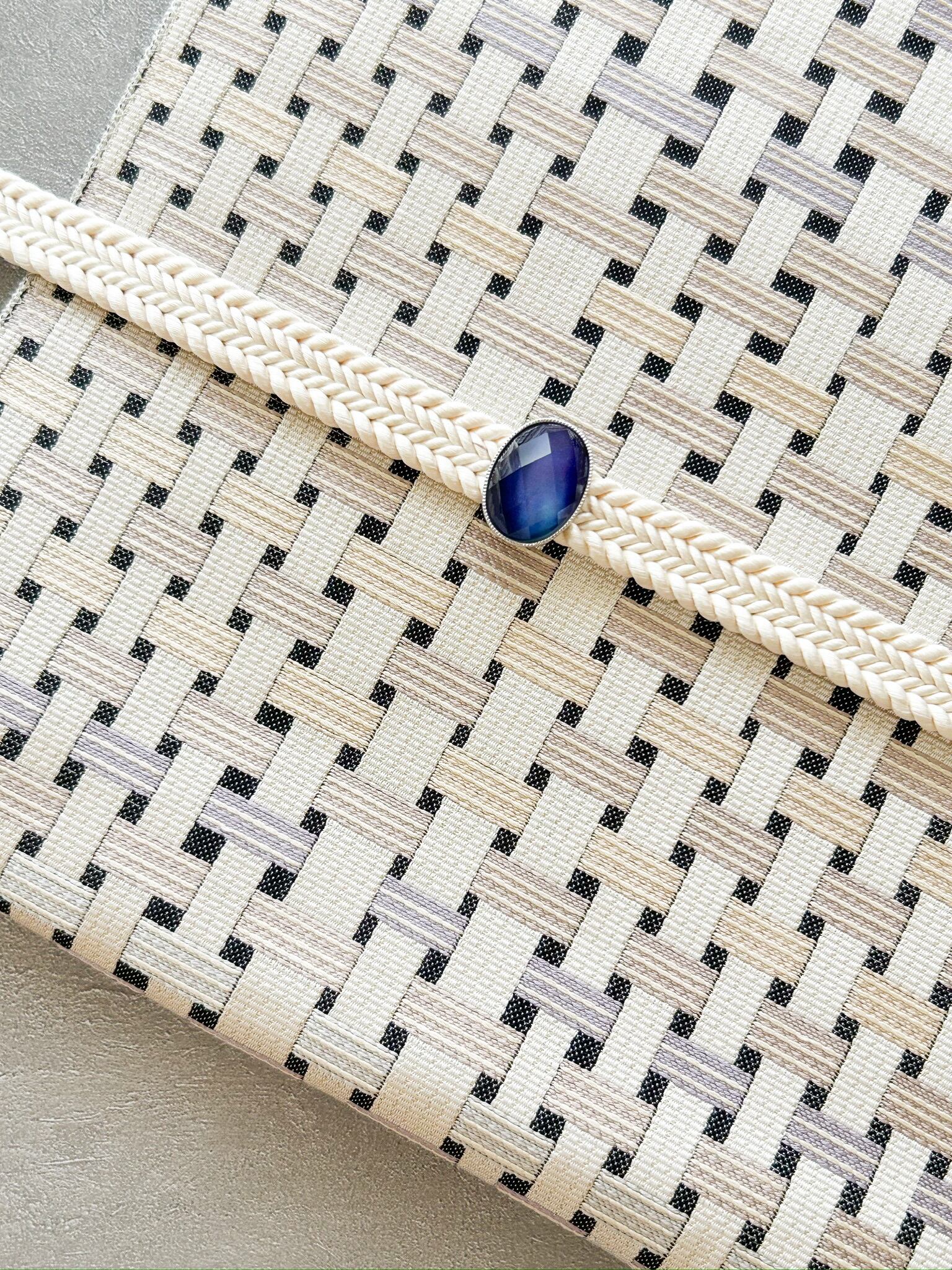 ブルーカラーの水晶×シェルの帯留めを