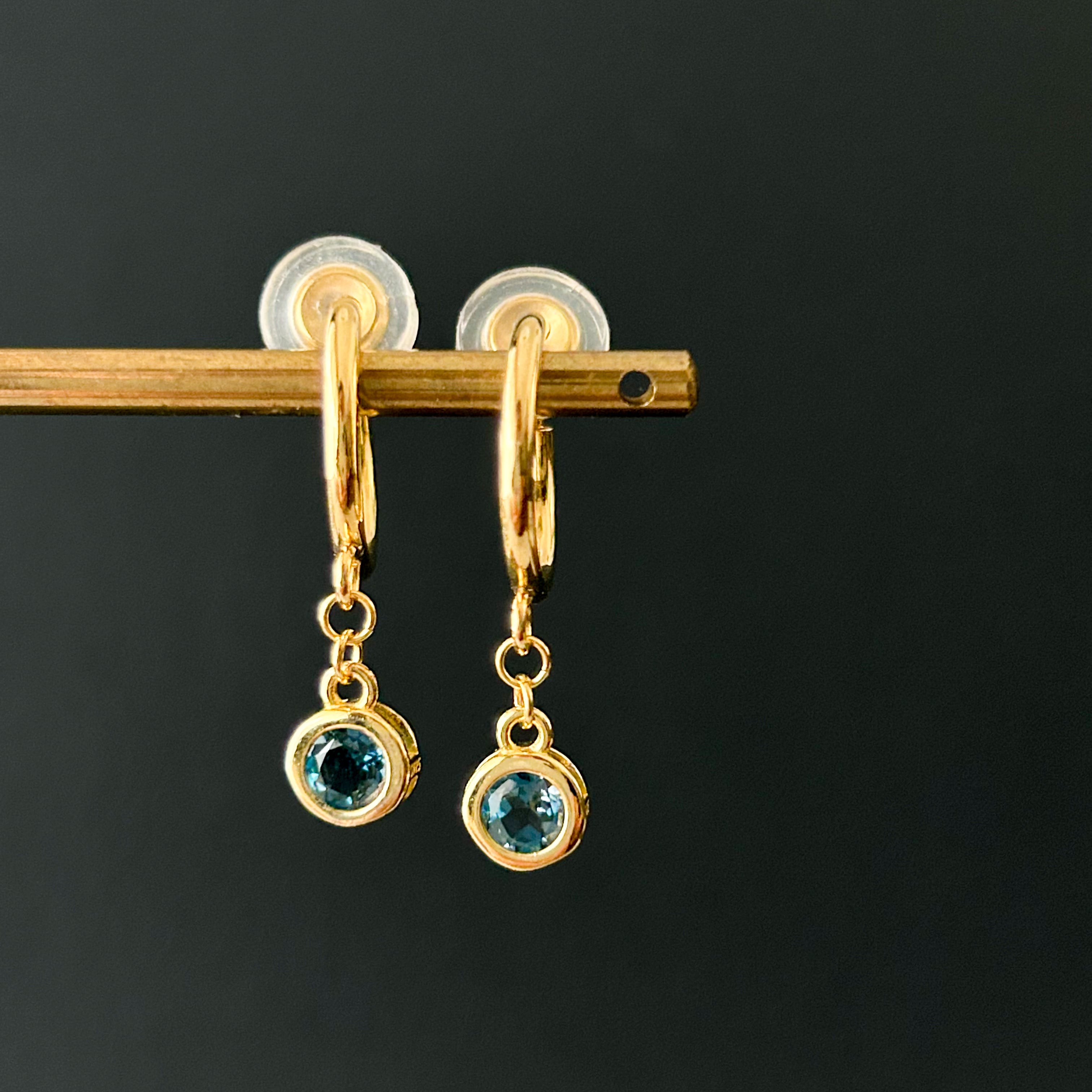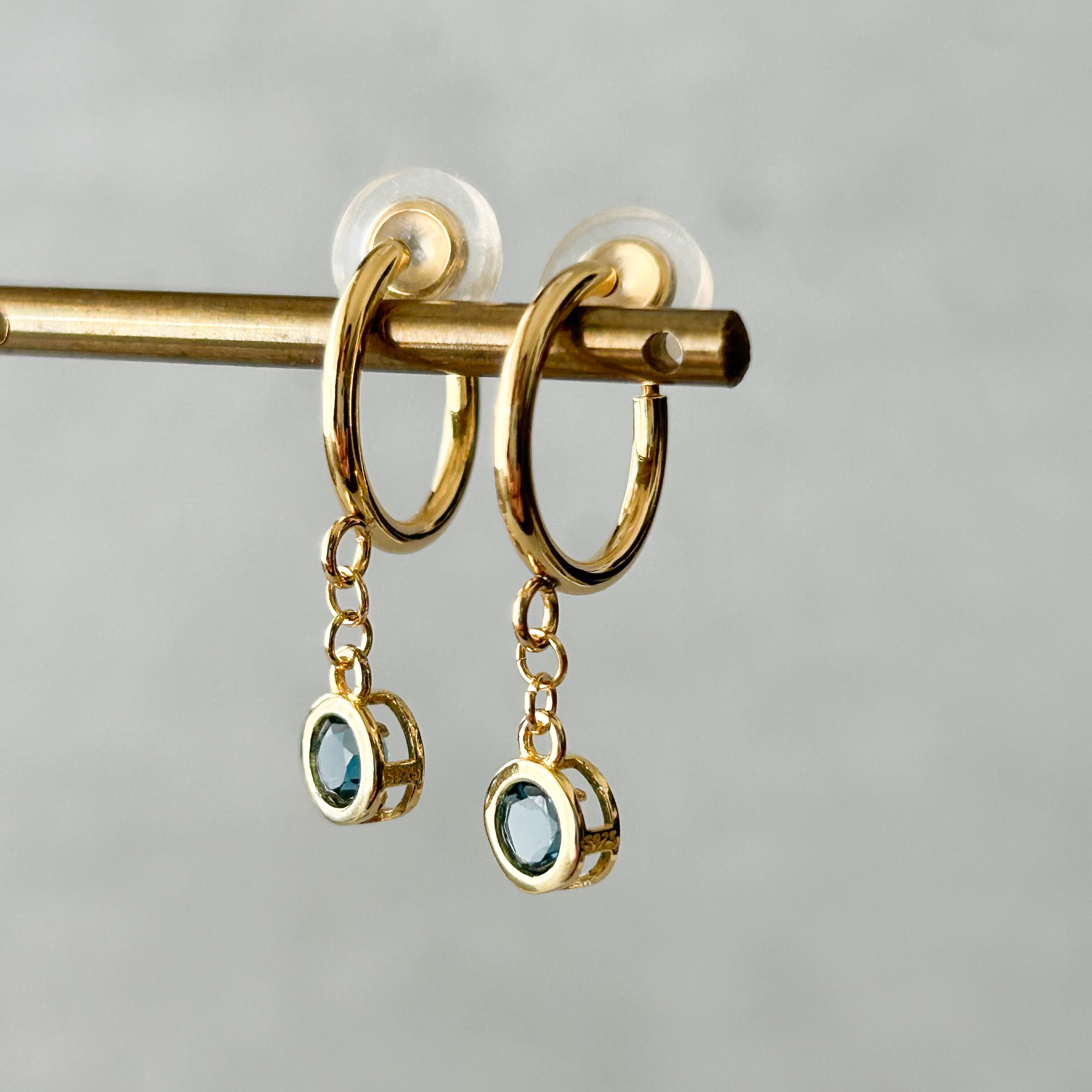 人気の天然石ロンドンブルートパーズ4mmサイズのフープイヤリングになります。