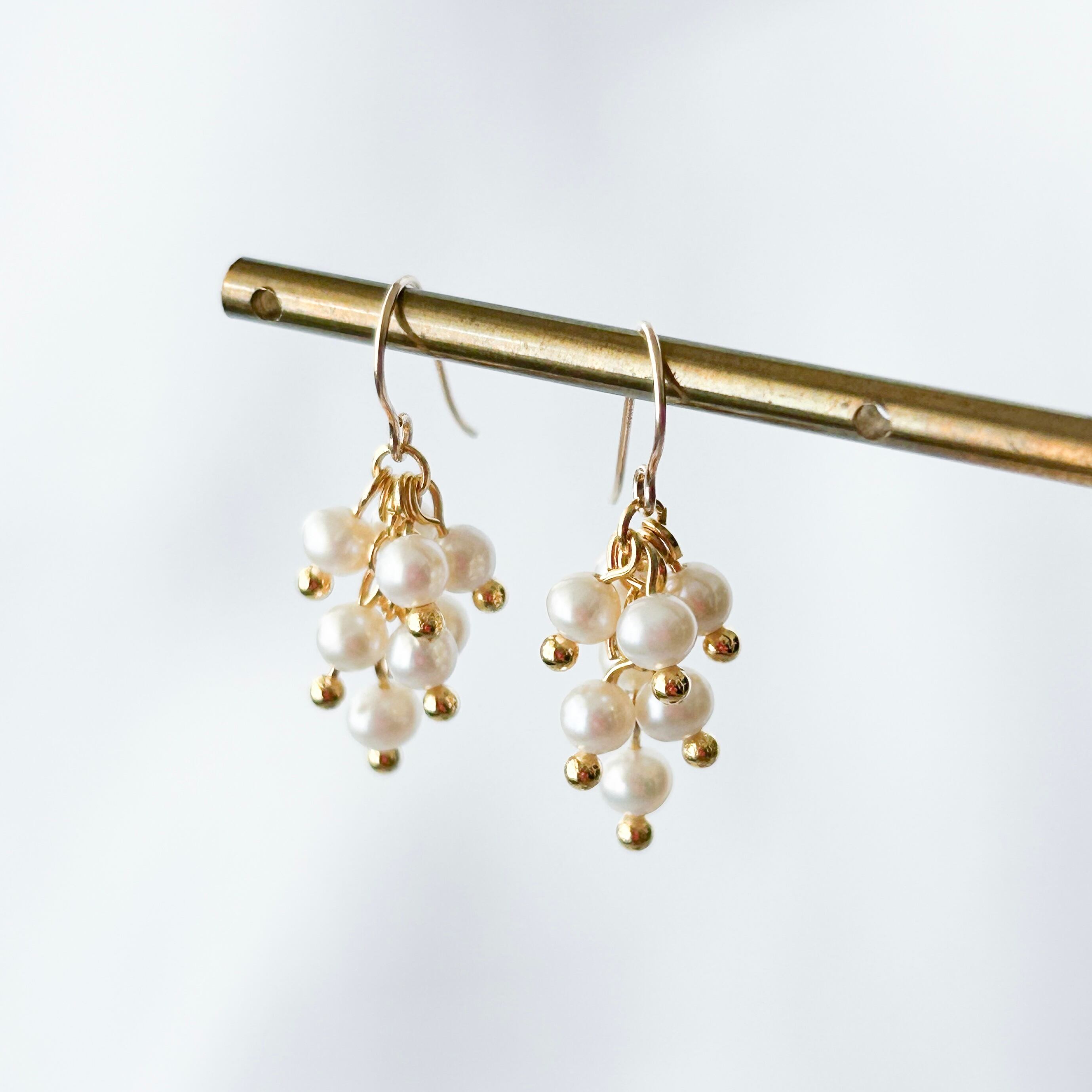 目立ちすぎず、でも顔周りをパッと華やかにしてくれる小ぶりサイズの淡水パールピアス・イヤリングです。
