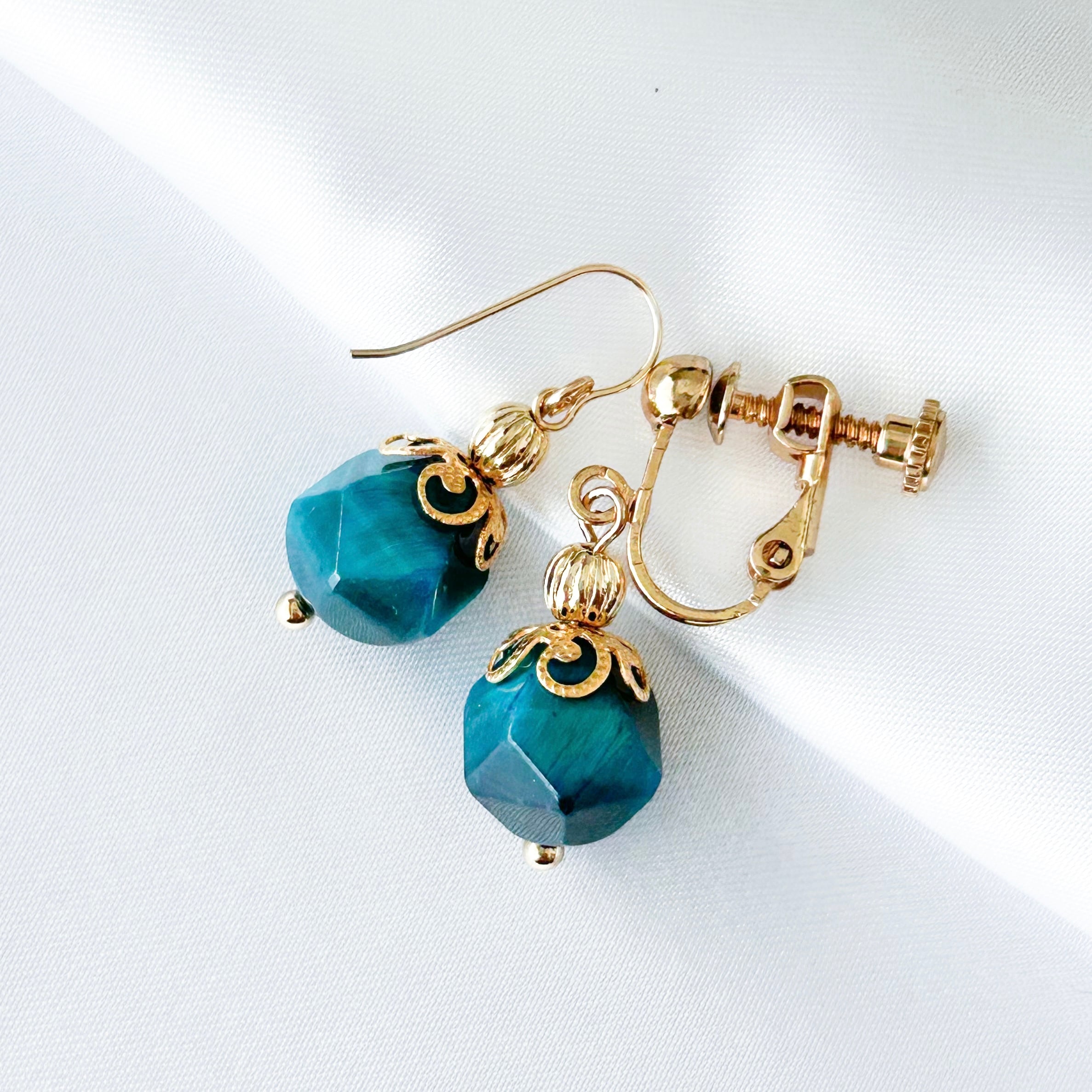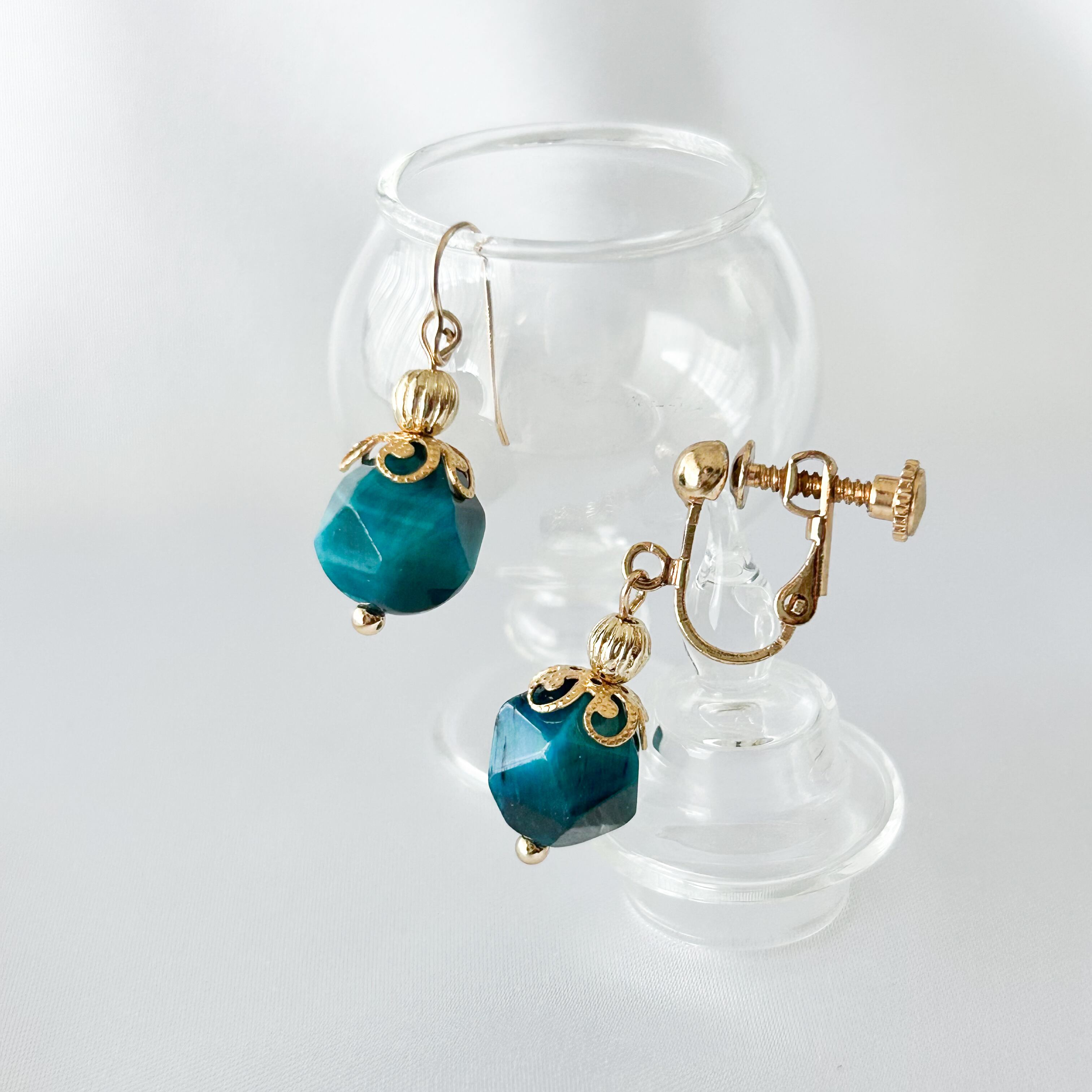 ◆天然石:ブルーグリーンカラータイガーアイ(染色)