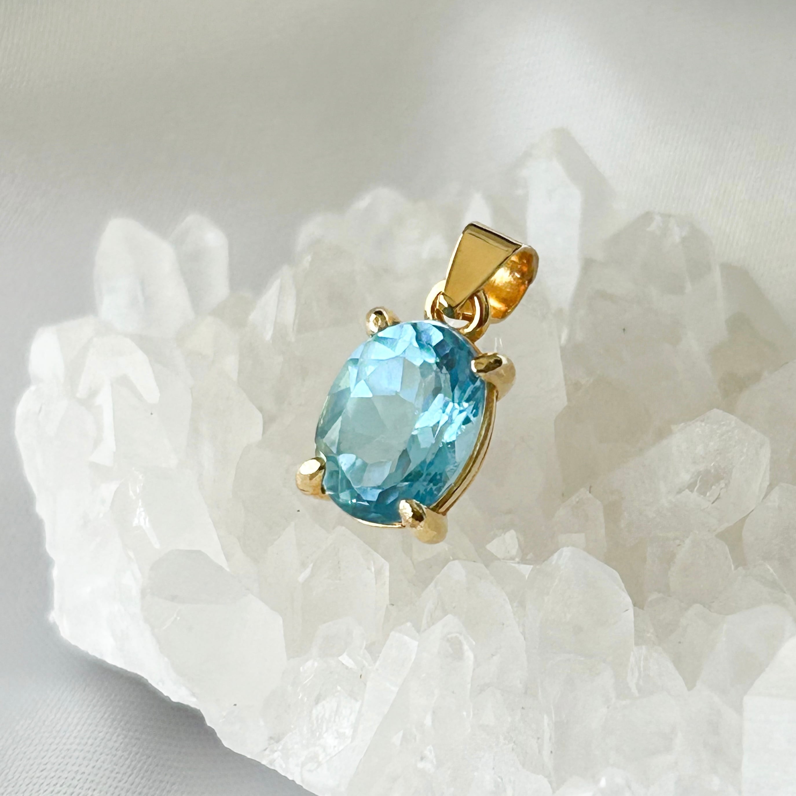【天然石ペンダントトップ】11月誕生石 スイスブルートパーズ 天然石 ネックレス チャーム 重ね付け シンプル 8×6mm 青