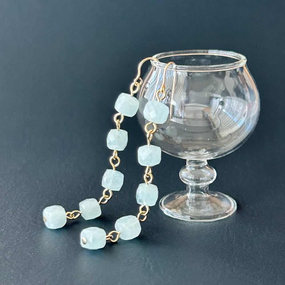 海のような清涼感を漂わせるキューブ型のアクアマリンはパステル寄りの水色と強すぎない色味のため